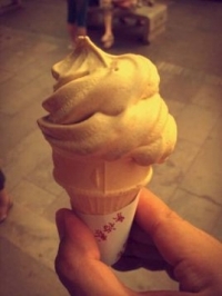 北京市内に支店が多数ある呉裕泰茶荘は有名な老舗。 店頭で販売している花茶のアイスクリーム(冰淇淋)がおすすめ。
