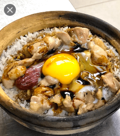 干し肉や腸詰など、さまざまな具をのせた土鍋炊きごはん